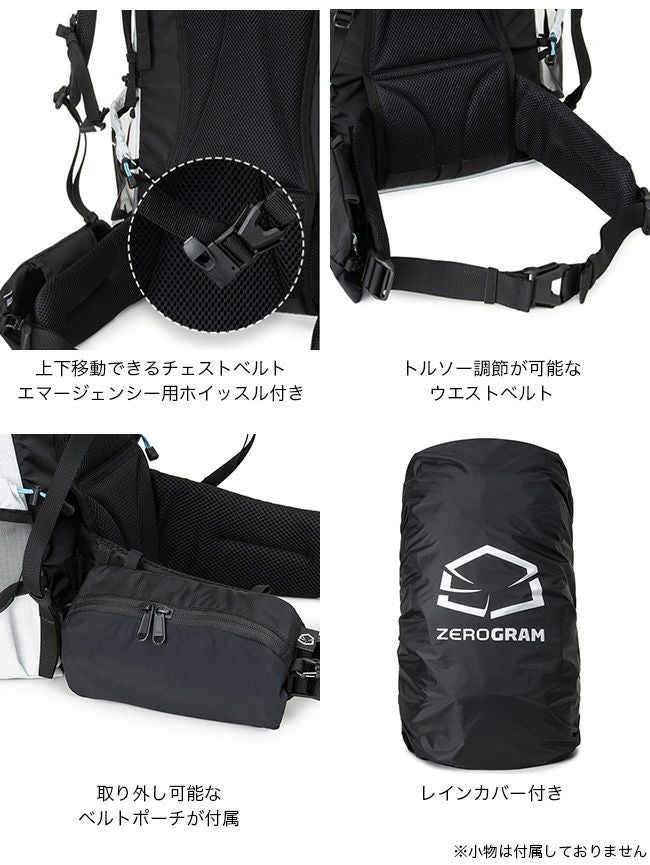 軽量ながら行動時の揺れを抑え、耐負荷を軽減するTフレーム(取り外し可能)内蔵、しっかりとしたショルダーベルトやウエストベルトは長距離の移動でも快適です。