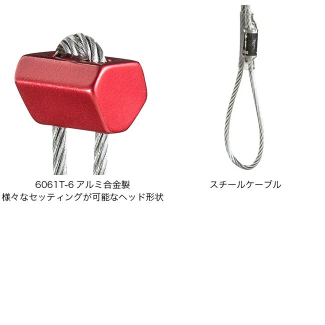 耐久性に優れた亜鉛メッキスチールケーブルを採用し、信頼性の高いクライミングプロテクションとして長く使用できます。