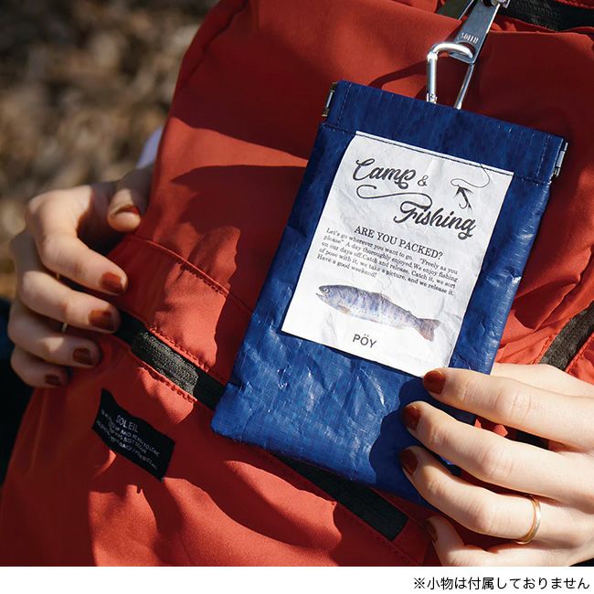 水をはじくPE素材を使用したPOY。魚のデザインでアウトドア感満載。外遊びのおともにぴったり