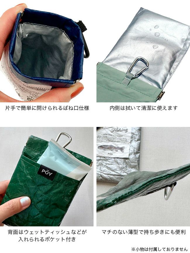 POY(ポーイ)は、外出先で出てしまうちょっとしたゴミを”ポーイ”っと入れることができる携帯ゴミ箱です。