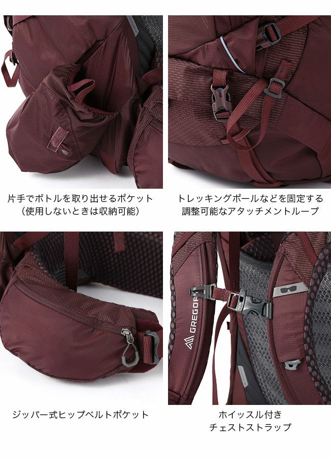 ・内側に、グレゴリー独自の3Dハイドロリザーバー専用スピードクリップ取付けシステムを備えたハイドレーション・スリーブ(リザーバーは別売り)。
