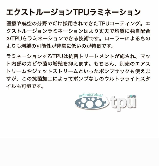 超軽量ながら10cmもの厚さをもつエアスプラングセル構造に、サーモライト中綿とExkinプラチナム反射フィルムを内蔵。