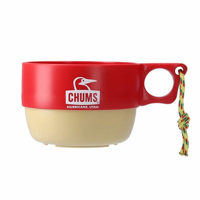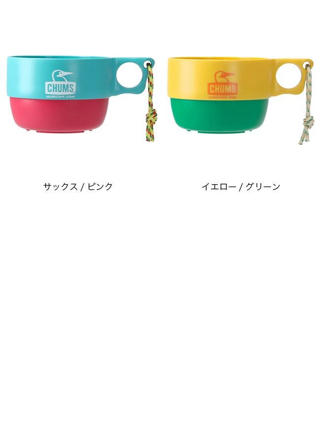 チャムス定番のキャンパーマグカップと同デザインで、カラフルな色使いと二つ穴の持ち手が特徴的。