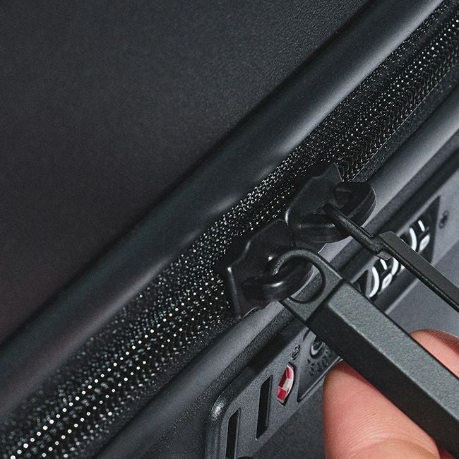 TSA認定のコンビネーションロックと、アタッチメントポイント付きのトップハンドル&サイドハンドルを備えています