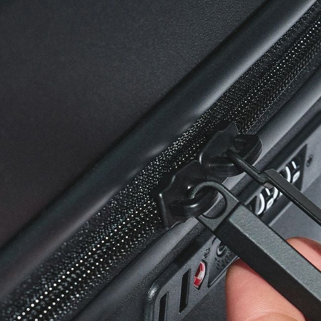 TSA認定のコンビネーションロックと、アタッチメントポイント付きのトップハンドル&サイドハンドルを備えています