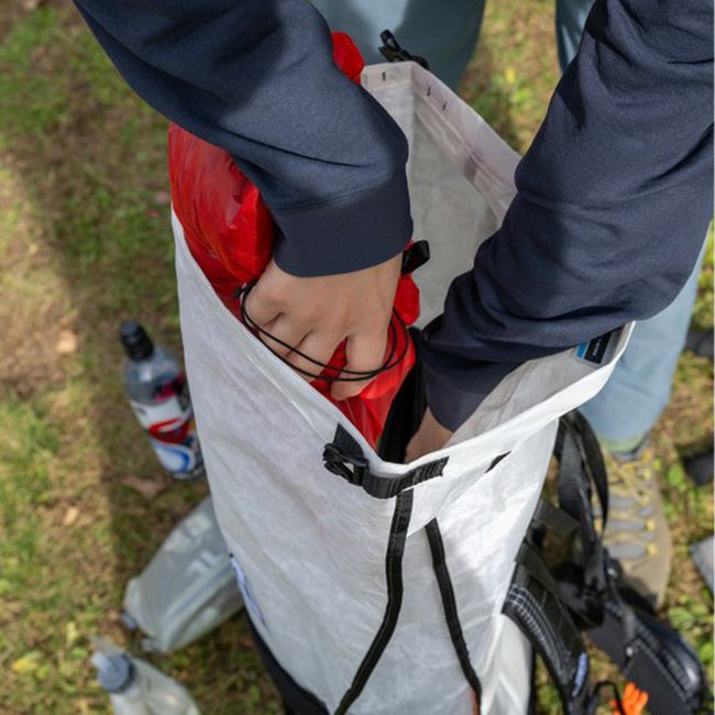 敢えて底マチを設けずザックの隙間に入れやすくしています。