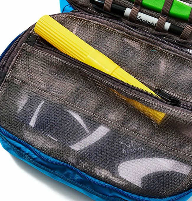 ジッパーポケットやエラスティックループによる仕切り付き。