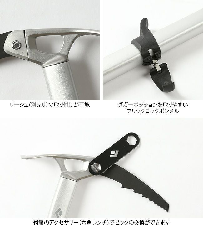 ワンタッチで位置調整できるフリックロックポンメルを装備し、急斜面でダガーポジションを楽に取ることができます。