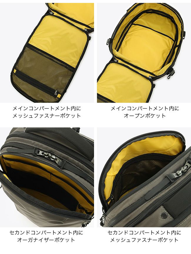 セカンドコンパートメントにはオーガナイザーポケットとメッシュポケットを備え、小物類の整理もスムーズ。