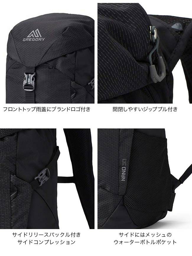 ナノ30は巾着式のトップアクセスで、複数のポケットにより効率的に収納できます。