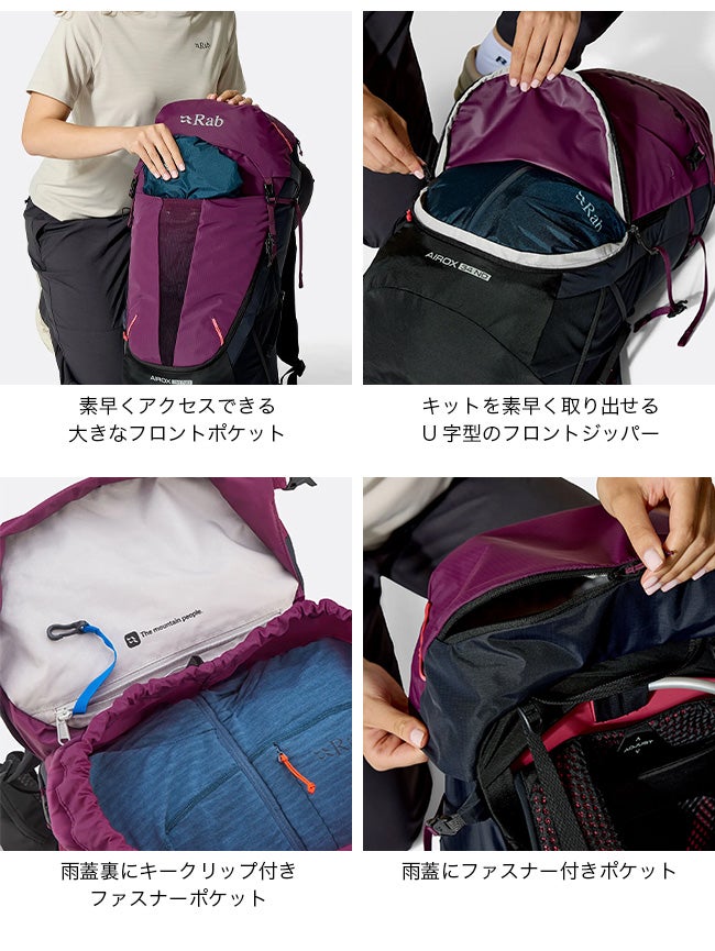 ・ギアにすぐアクセスできるフロントジッパー開口部