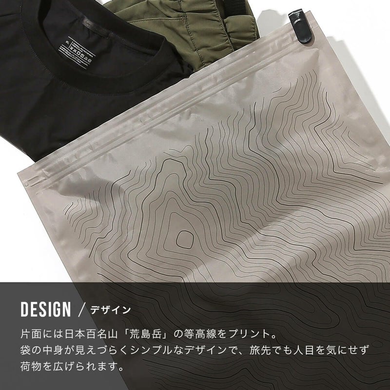 袋の中身が見えづらくシンプルなデザインで、旅先でも人目を気にせず荷物を広げられます。