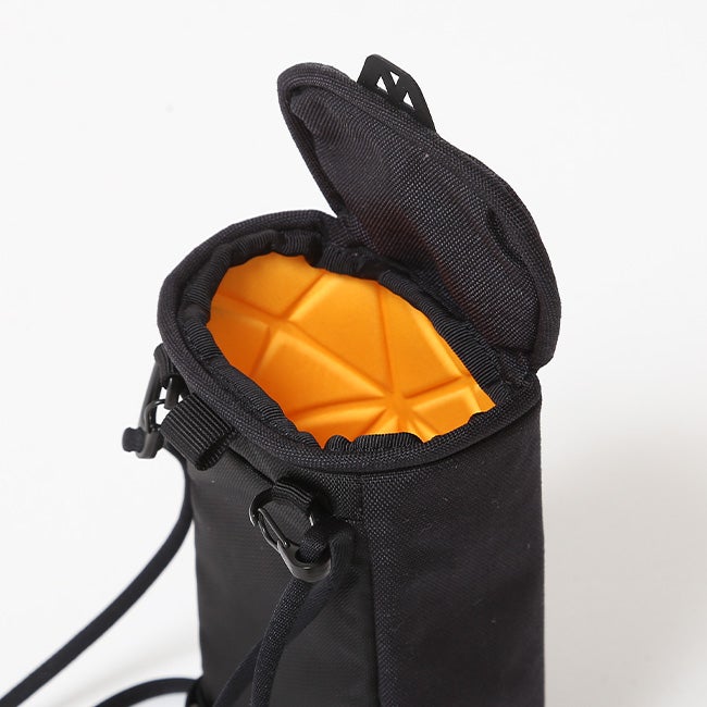 バックパックのショルダーハーネスに取り付け可能な仕様で、行動中も快適に携行。