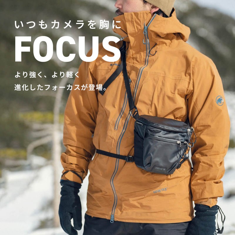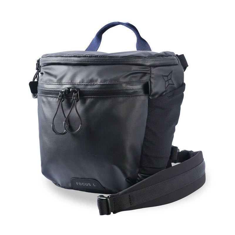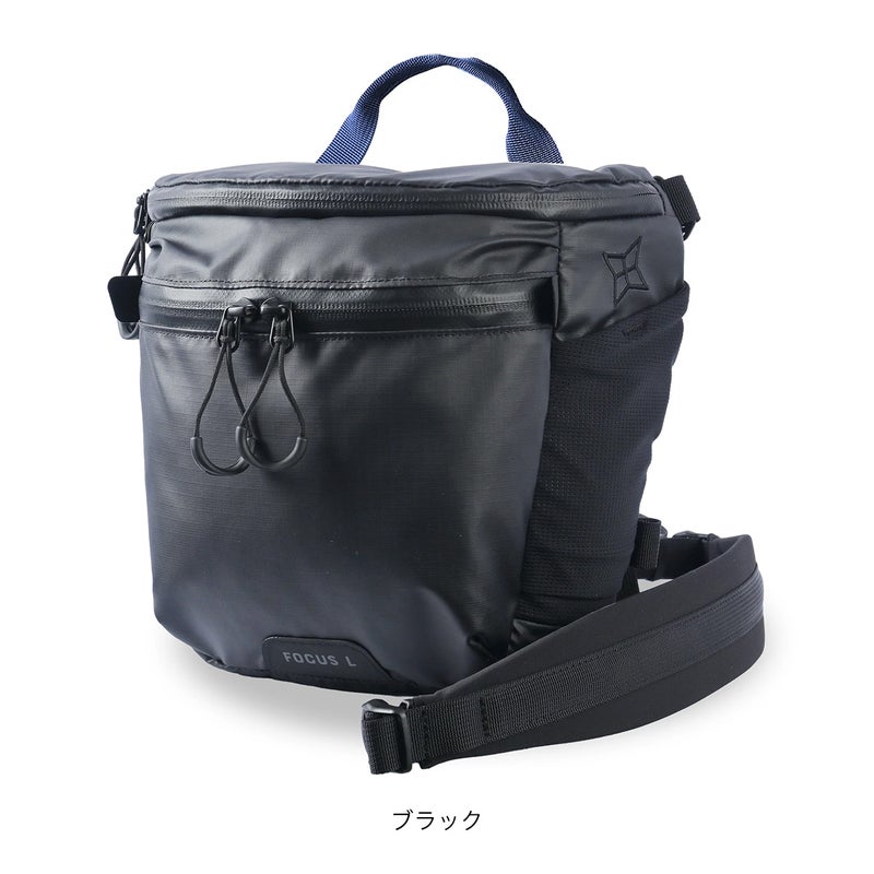 FOCUSは耐候性が高く、超軽量なカメラバックです。素材の見直しによりLサイズは270gのより軽いカメラバックになりました。身体への負担を軽減し、撮影に集中することができます。