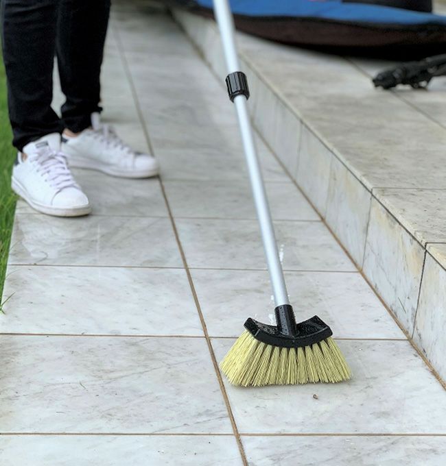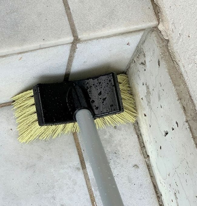 中庭のタイル掃除用にリールホースと併せて購入しました。リールホースに連結できるので、水を出しながらの使用が可能です。ブラシ部分がもう少し硬めでも良かったです。