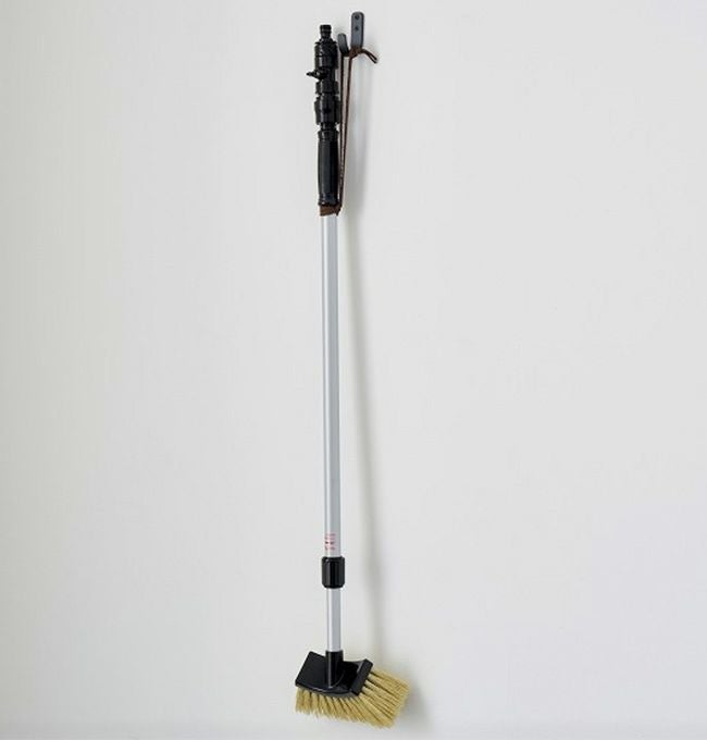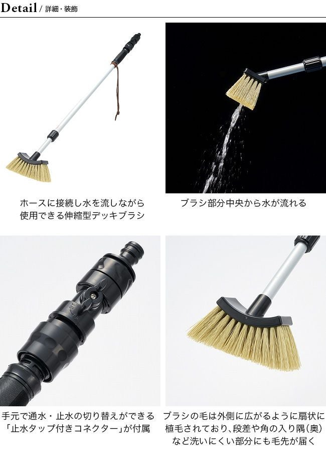 ホースに接続し水を流しながら使用できる伸縮型デッキブラシです。