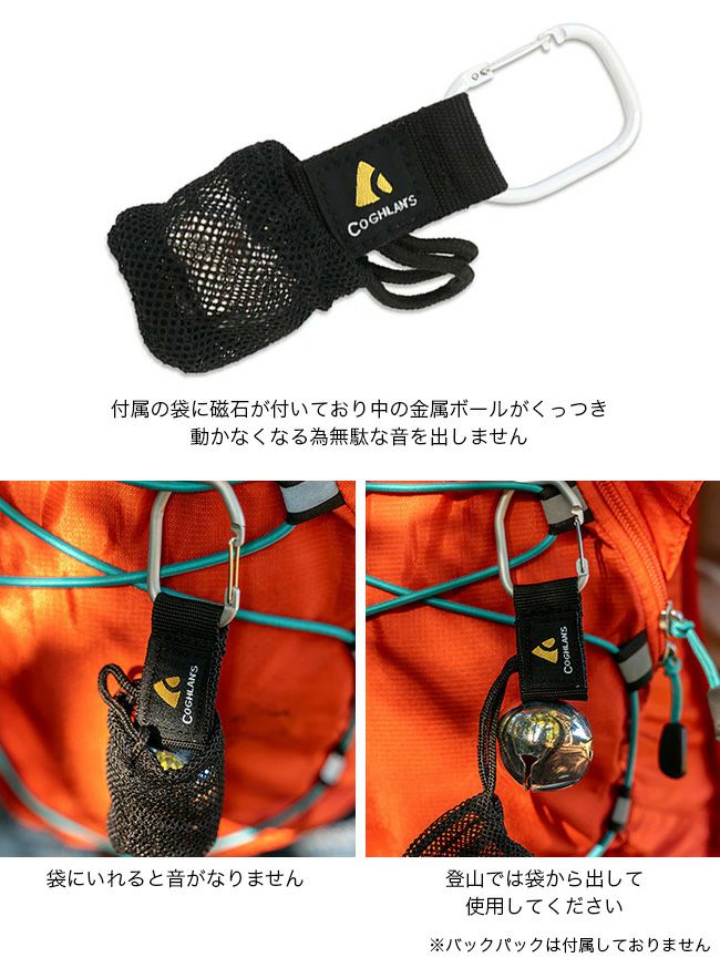 COGHLANS コフラン ベアーベル カラビナ付きはカラビナでペットの首輪やバックパック、ベルトに簡単に取り付けられ、出かけるときにジャラジャラと鳴り、クマや他の生き物にあなたの存在を知らせてくれるベアーベルです。