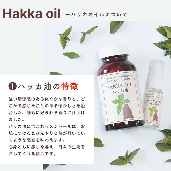 家族お一人に一本ずつや、各お部屋に一本ずついかがですか?ヒグマがハッカを持っているユニークなパッケージ&ラベルが可愛くて、インテリアやプレゼントにもオススメです♪天然和種ハッカ100%なのでお子様にも安心です。
