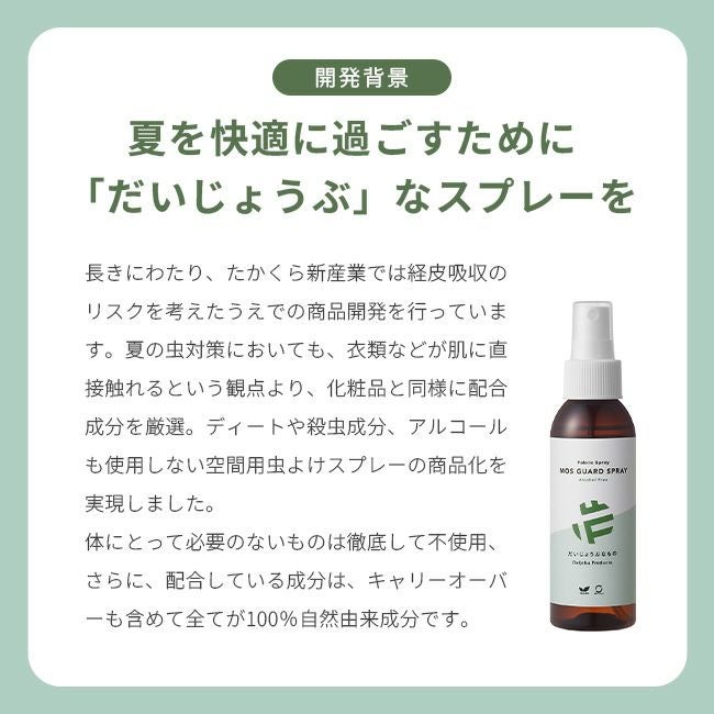 「あなたとあなたの一番大切な人に、心からだいじょうぶと思えるものを」のコンセプトのもと商品開発を行うブランド「だいじょうぶなもの」より、この度、自然由来成分100%の虫よけスプレーを発売。