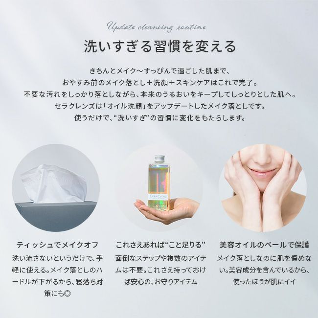 肌悩みがありシンプルなケアをしたい方や、はじめてのオイル洗顔におすすめ。