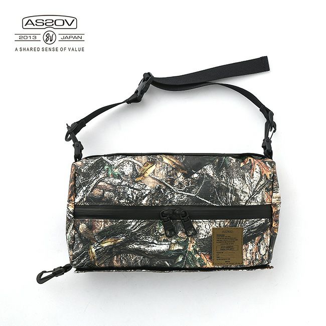 AS2OVアウトドアアイテムで人気のある305Dポリエステルにオリジナルリアルツリーカモをプリントし、ポリカーボネートのコーティング加工 したオリジナルファブリックです。
