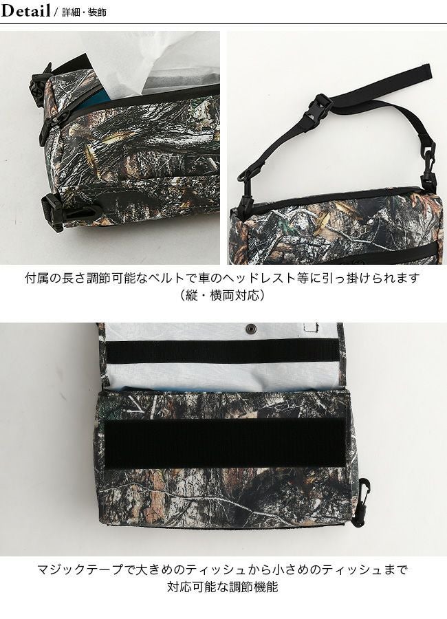 マジックテープで大きめのティッシュから小さめのティッシュまで対応可能な調節機能がついています。