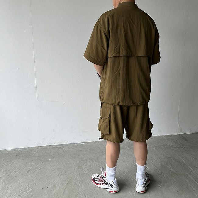 水捌けの良いナイロン素材を使用した夏のセットアップ
