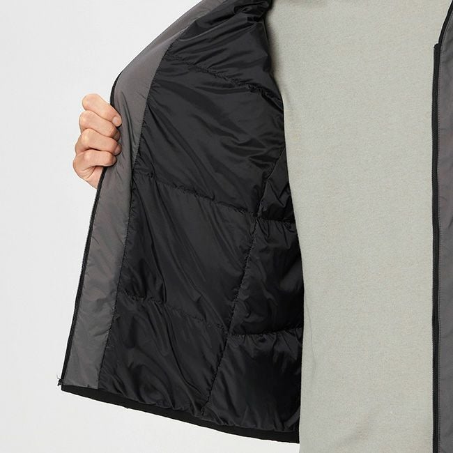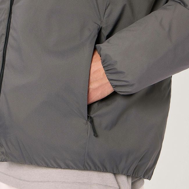 表地には、仮撚り糸を使用して光沢を抑えたマイクロリップストップ生地を採用し、ダウンには環境に配慮したリサイクルダウン(リサイクル原料率80%)を使用しています。