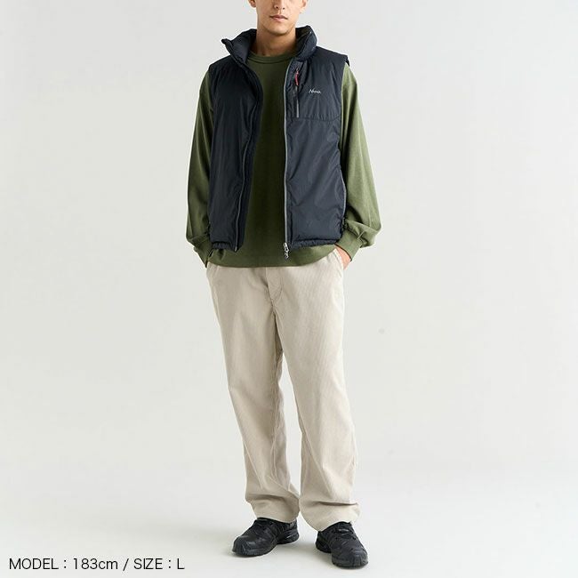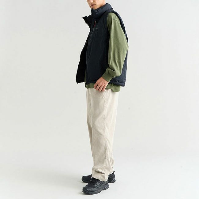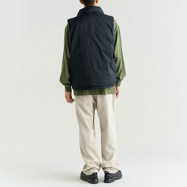 襟はネックを高めにし、首元の保温性も確保しつつ、腕の可動域を広げるベストタイプはカットソーからシャツ、パーカーまで幅広く着回すことができ、秋から春まで幅広いシーズンの着回しに対応。