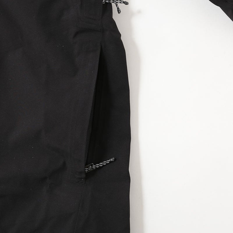 防水性/透湿性/防風性の確かなプロテクションを提供する、リサイクル・ポリエステル100%素材を表面に使用した丈夫な3層構造のePE採用のゴアテックス・パフォーマンス・ファブリクス。生地にもメンブレンにもDWR(耐久性撥水)加工にもPFASを意図的に添加せずに製造