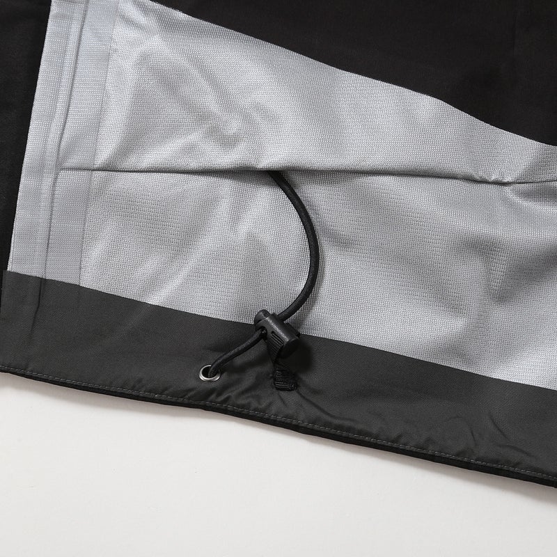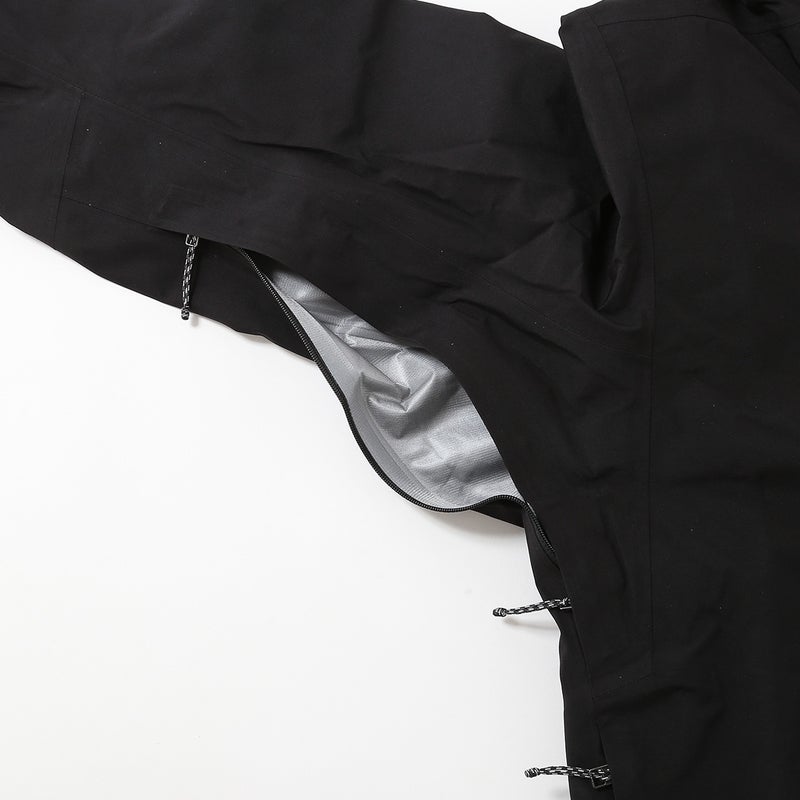 水分の浸入を防ぐコーティング加工済みのツーウェイ・ピットジッパーはベンチレーションを促進し、腕を上げても身頃がずり上がらない