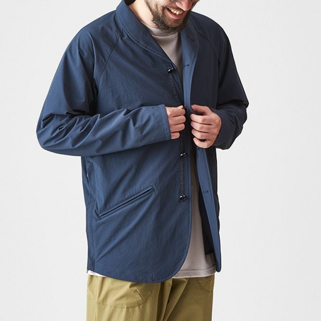 衿を立てれば風や寒さを防ぎ、耐久性の高いパラシュートボタンを採用。