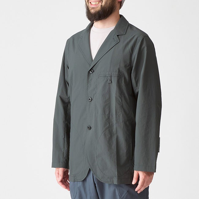 ジャケットなのに131gととても軽く、光沢のない自然な風合いと高い通気度を備えたダブルフェイスの生地を採用しています。