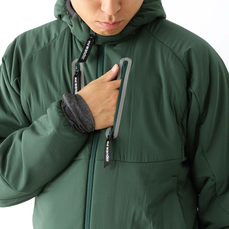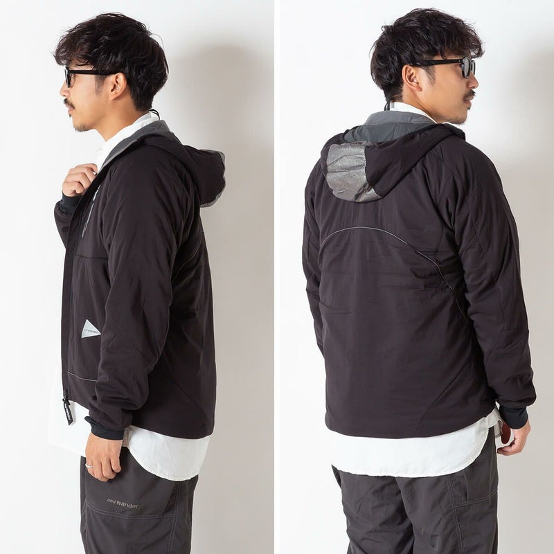 保温性と速乾性速乾性を兼ね備えた、着用したまま体温調節が可能なフーディジャケット。