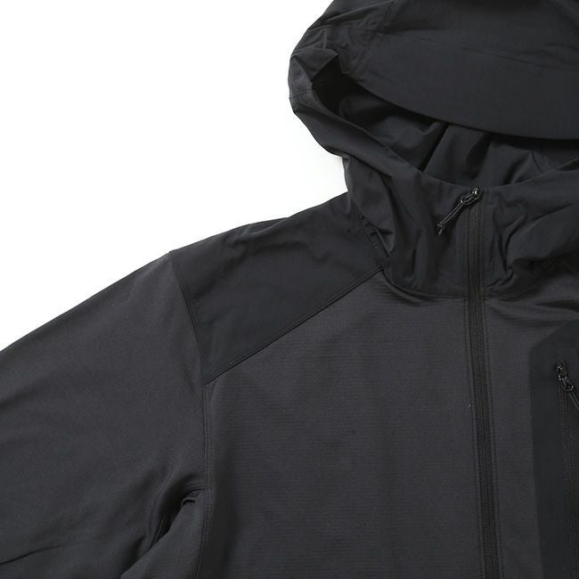 通気性のあるストレッチフリースとナイロン補強材で作られた超軽量クライミング フーディ。