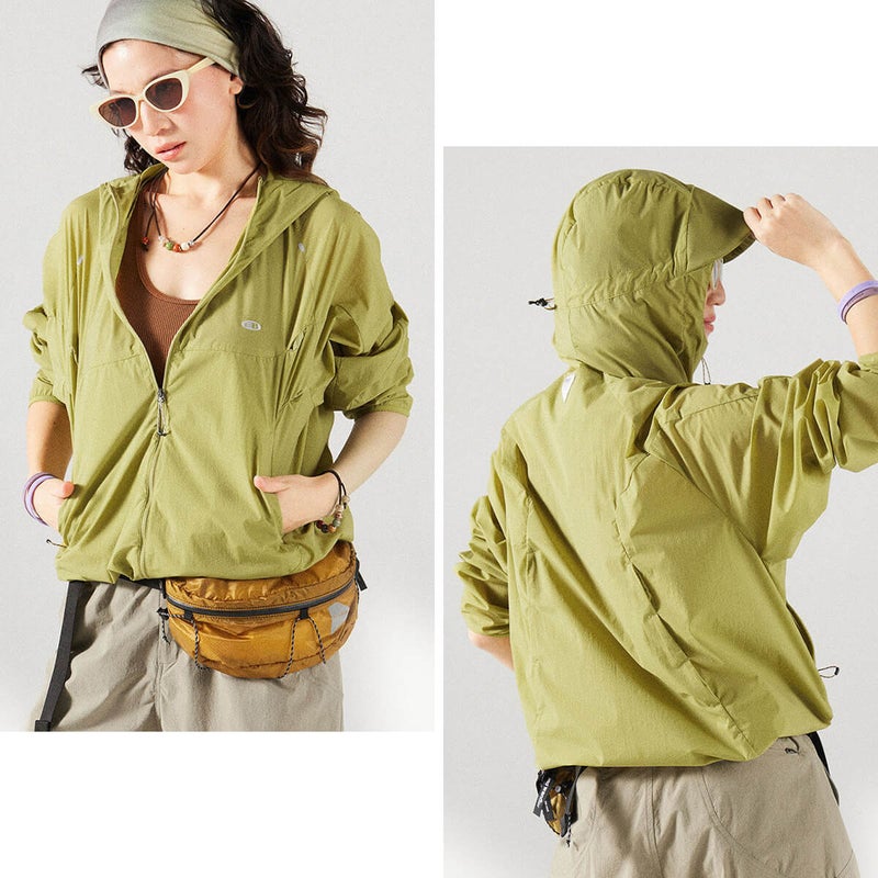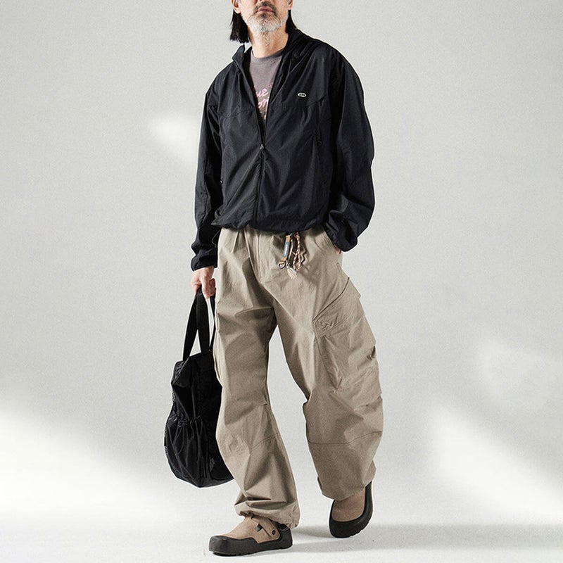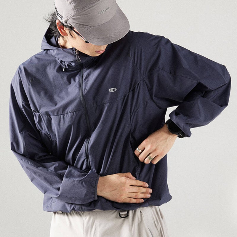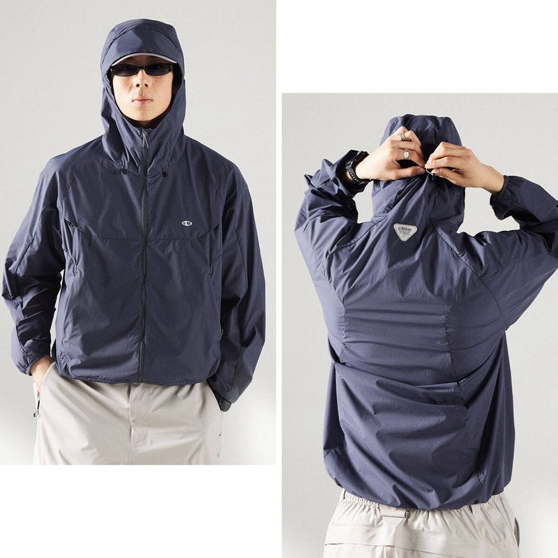 透け感のある軽やかさと機能美を両立した、モダンなシェルパーカー