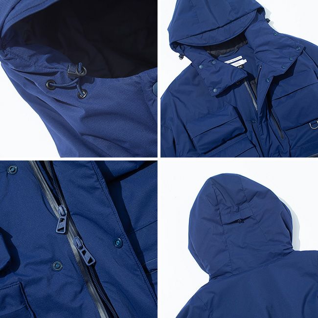 DWR(耐久性撥水)加工が施された表面生地は、雨や雪をはじき、通気性を維持します。