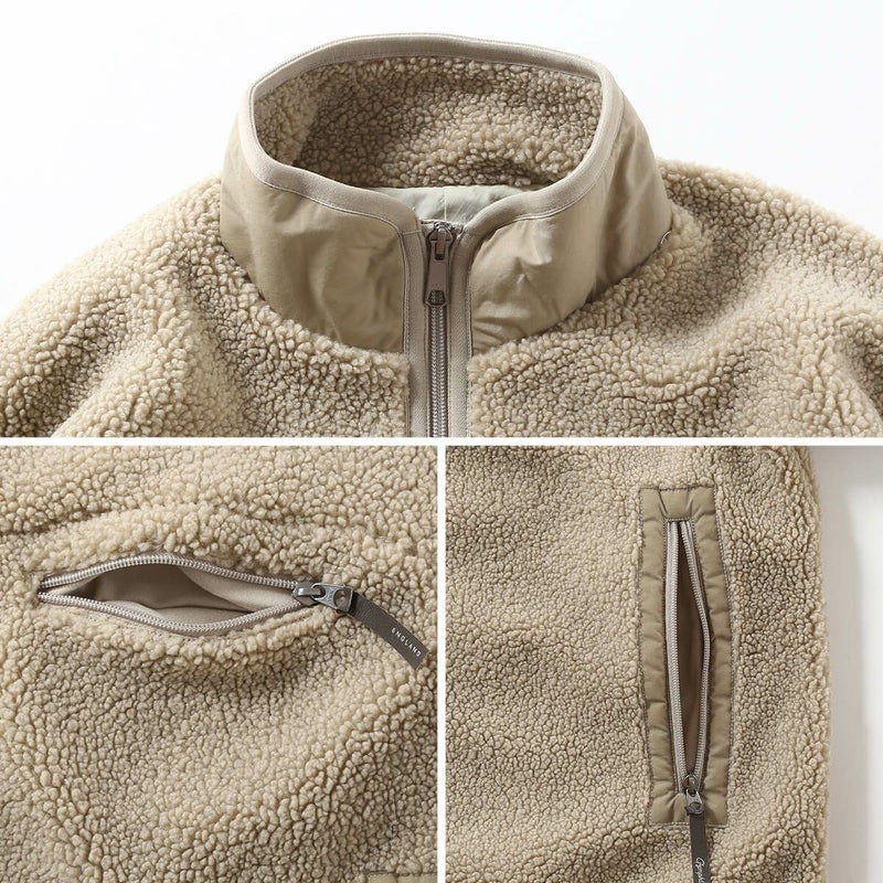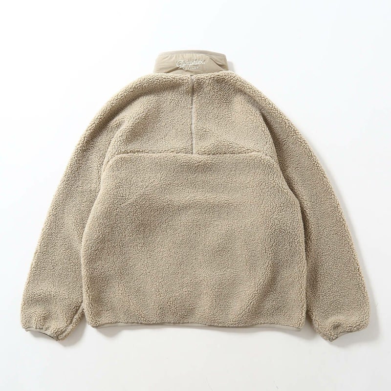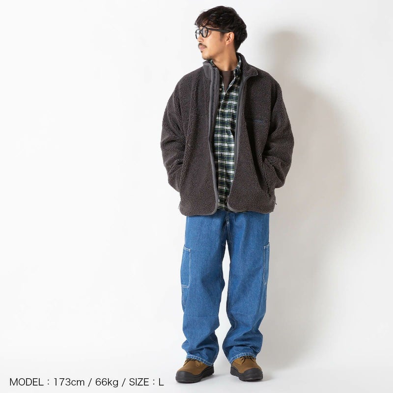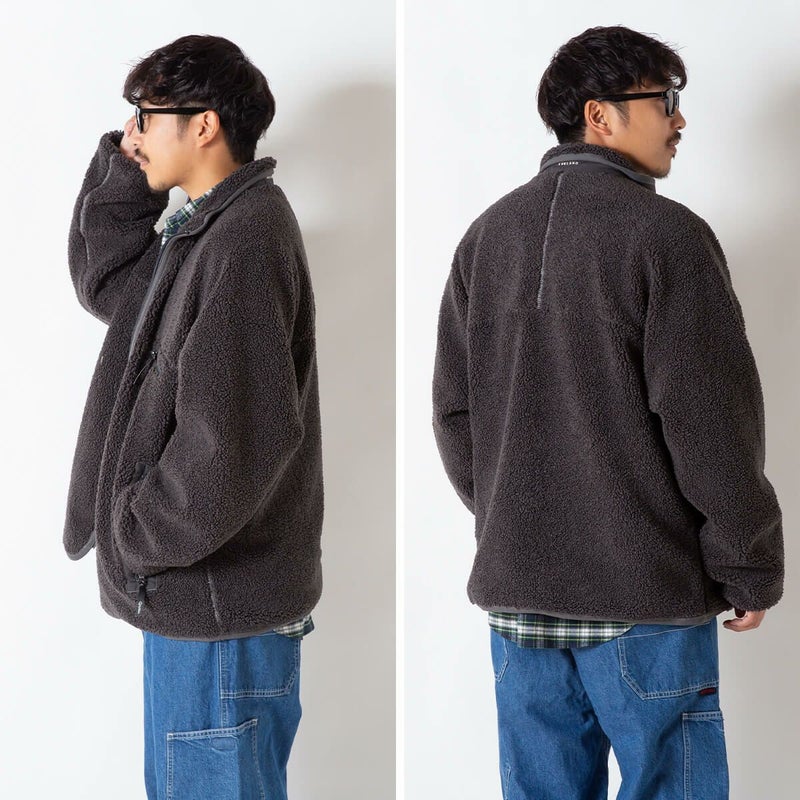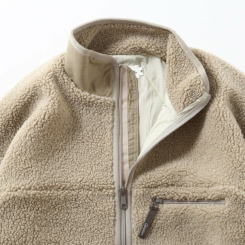 表地には柔らかさな〈COZY LIGHT BOA〉を使用し、風を通さないリップストップナイロンを裏地に使用することで軽くてあたたかいボアブルゾンに仕上げています。