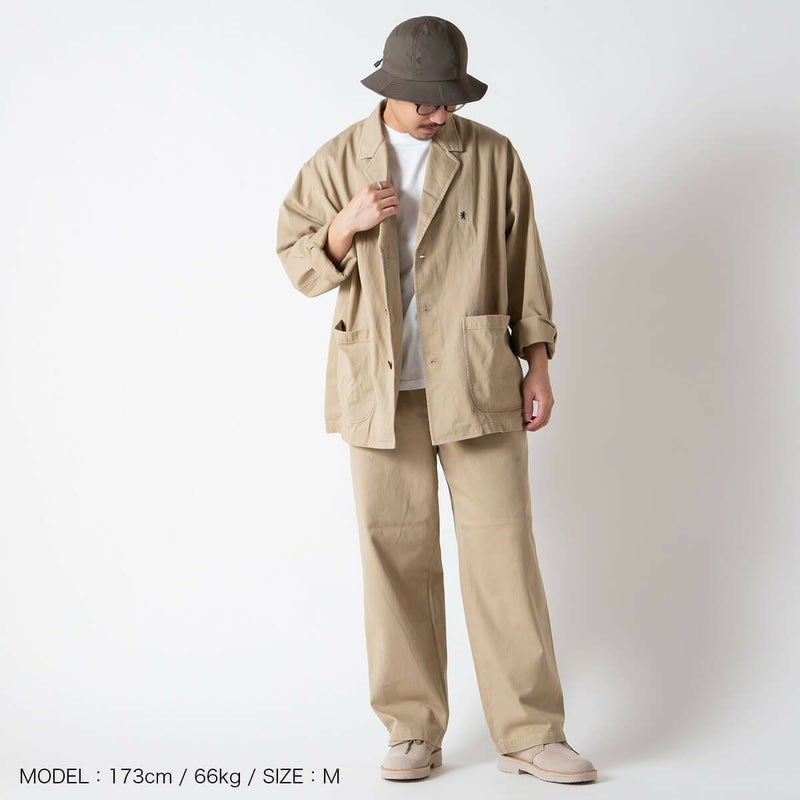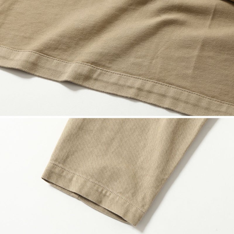 緩めに折り上げたツイル素材の裏面に起毛を施し、柔らかく落ち間のある新感覚のチノ素材に仕上げています。