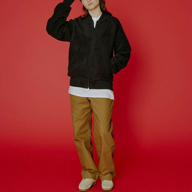 トレンド感のあるノーカラーのスタジャンでファッションに気軽に取り入れやすいアイテムです。