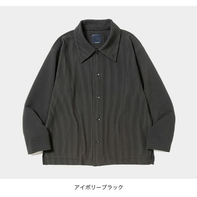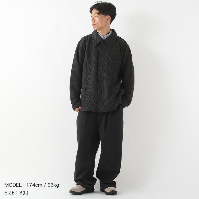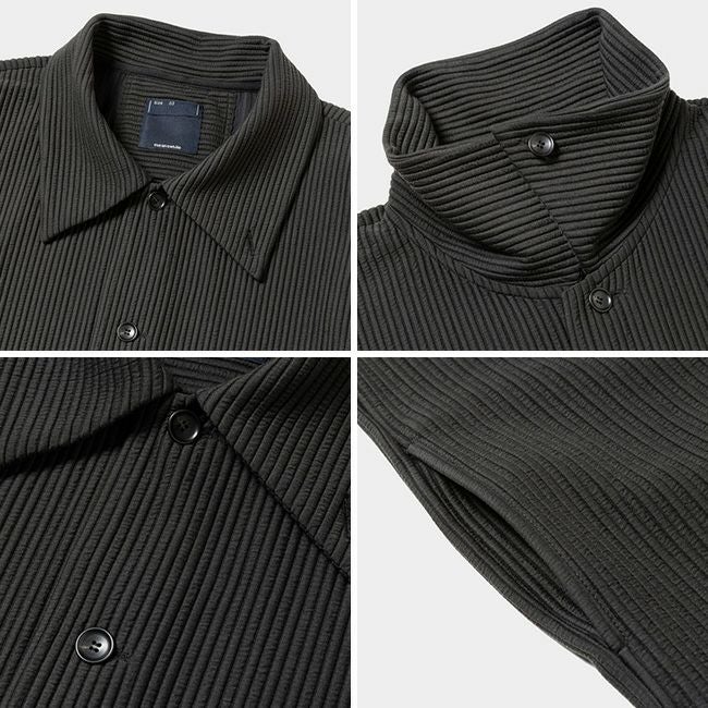 衿はスタンドカラーとしても着用可能で、マットな表情と抗ピリング性を実現。