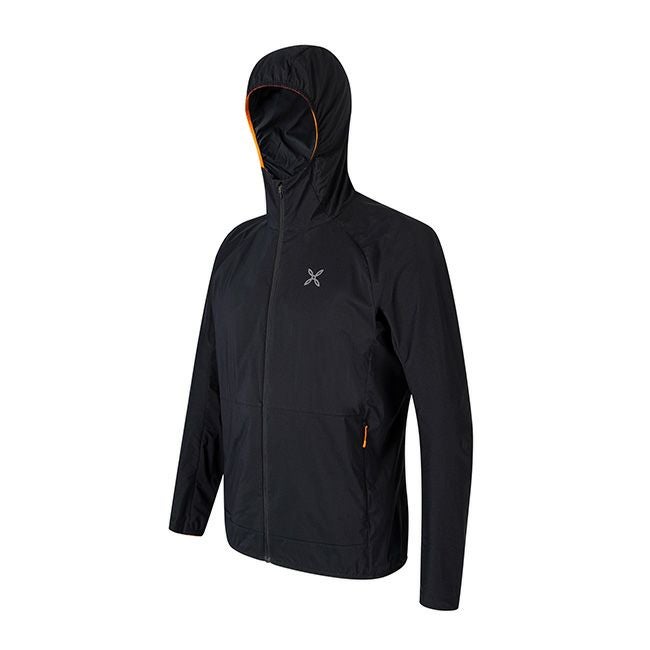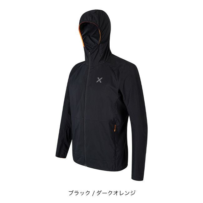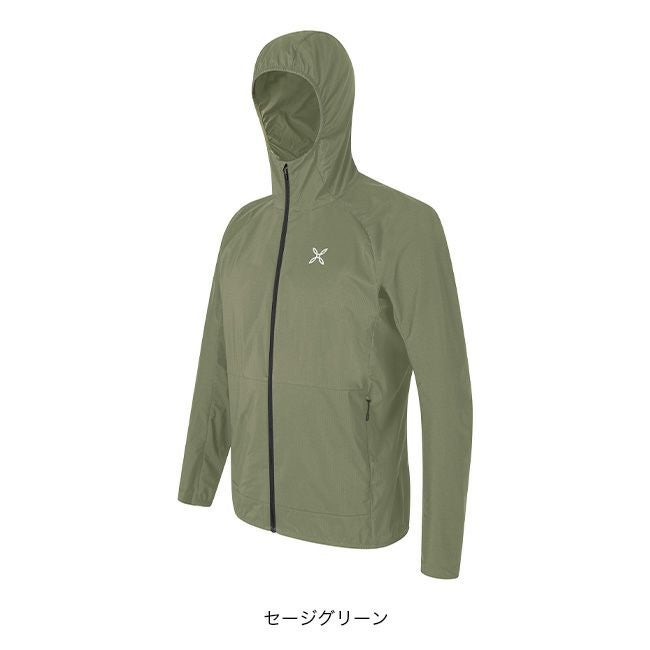登山やアウトドアスポーツに最適な、フード付きの軽量ウィンドシェル。