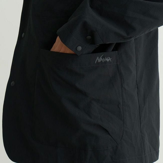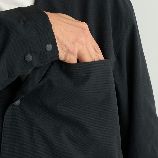 胸ポケットはシームに沿ってミニマルに仕上げ、ウエストには大きめのパッチポケットとコンシールZIPポケットを計4つ配置。