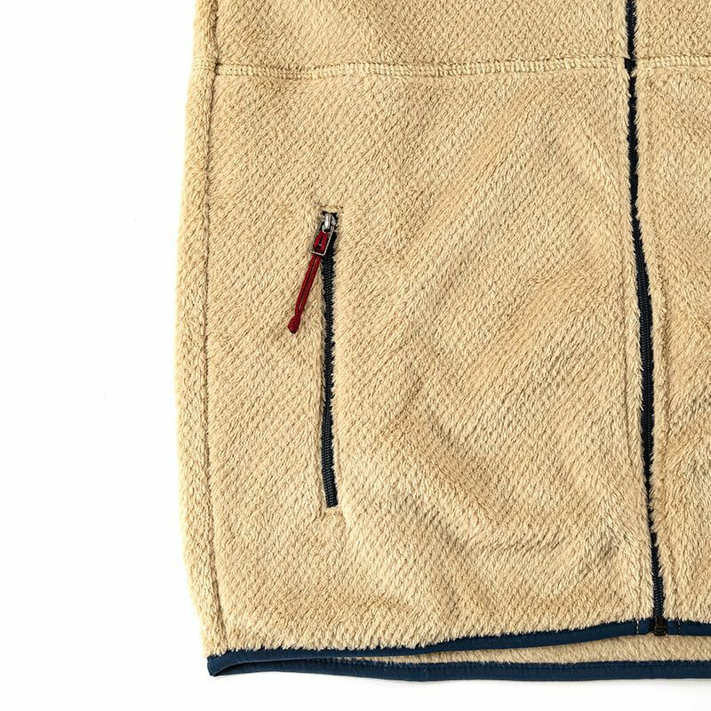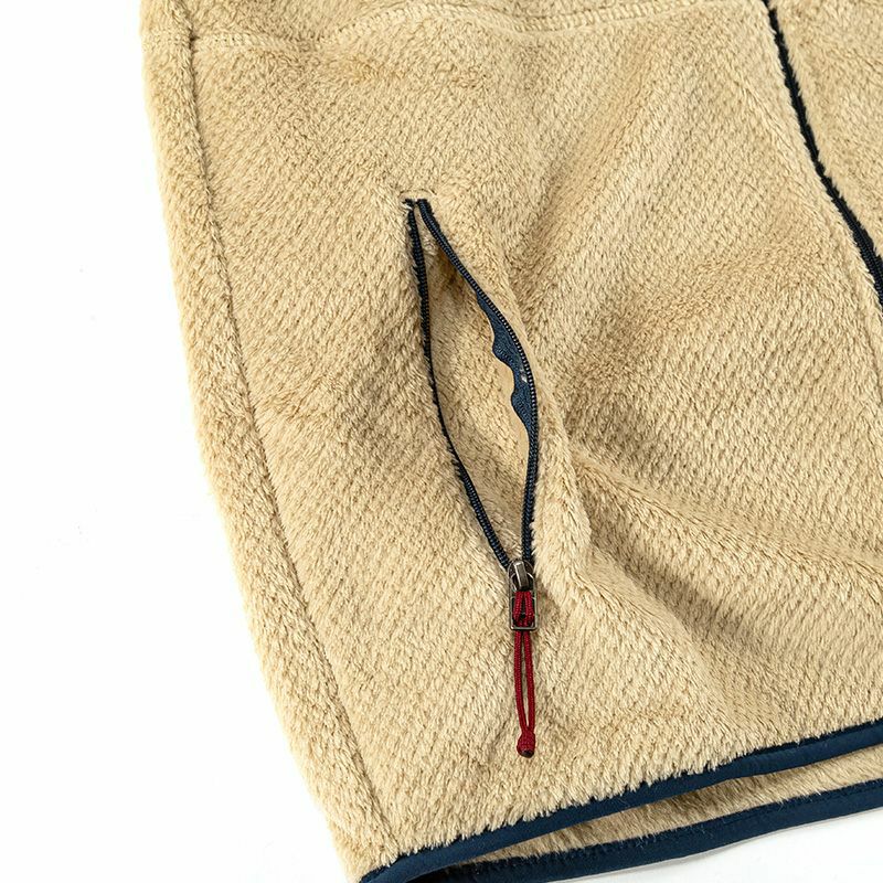 他のレイヤーの上に着ても下に着ても温かく快適な100%リサイクルされたハイパイル・フリース素材