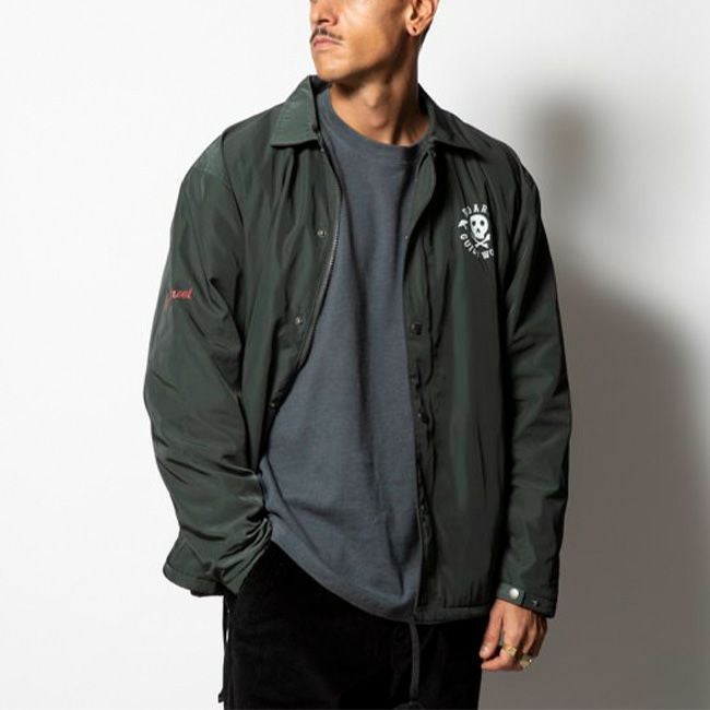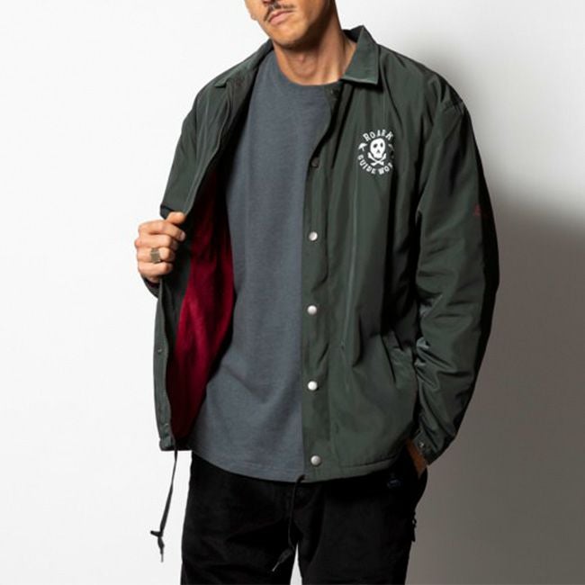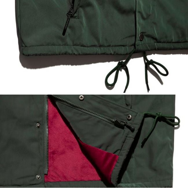 表地には適度なハリ感と艶感を持つポリエステル生地を採用し、裏地にはマイクロフリースが使われた防寒性が高いコーチジャケット。
