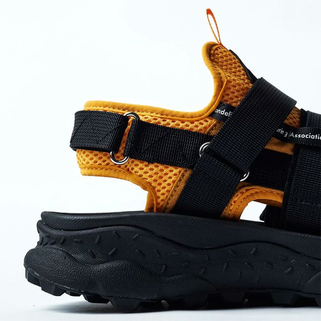 ミルスペックテープの格子状構造により立体としての強度と安定性が大きく底上げされハードな風格を持つサンダルとして仕上げられている。