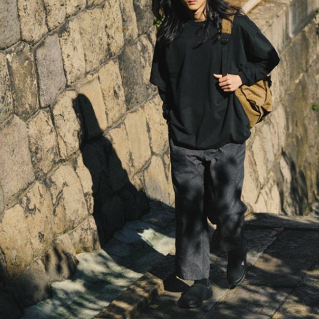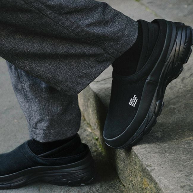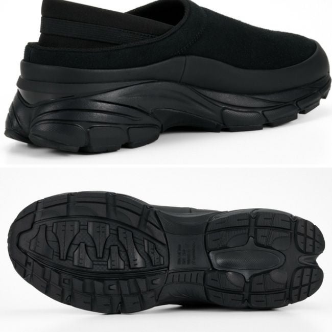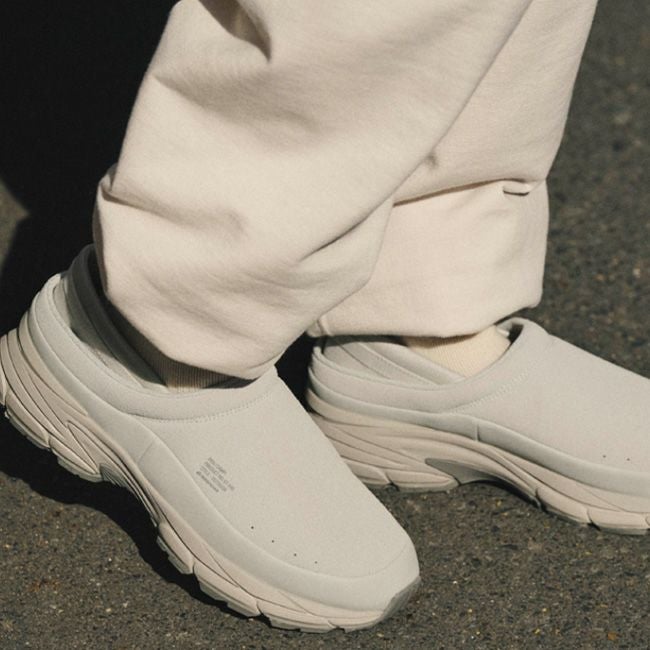 汚れ易い甲部分をカバーする構造のサボタイプをベースに、踏んでも履ける踵のストレッチ素材と凹凸のあるアウトソールを加えたシーズンリミテッドタイプ。
