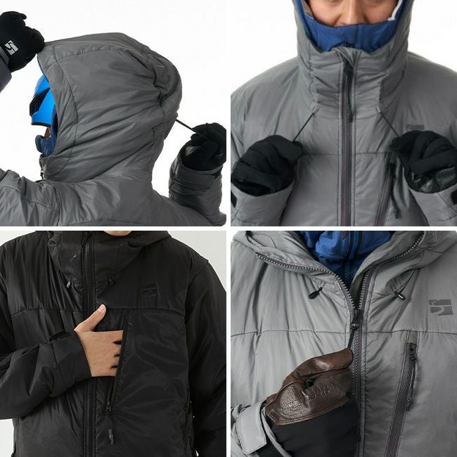 携行性に優れたビレイパーカーとしてはもちろん、雪山でのテント泊や雪洞泊などのシーンに防寒アウターとして活躍します。