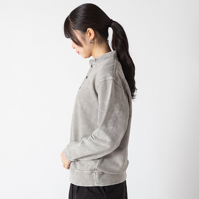 ピグメント加工を施した裏起毛のハリケーントップ。