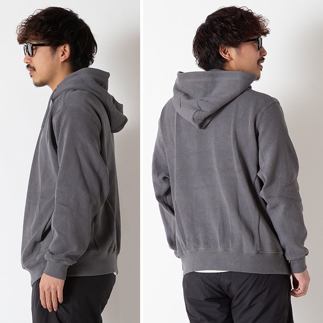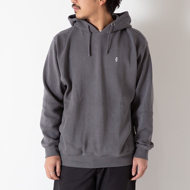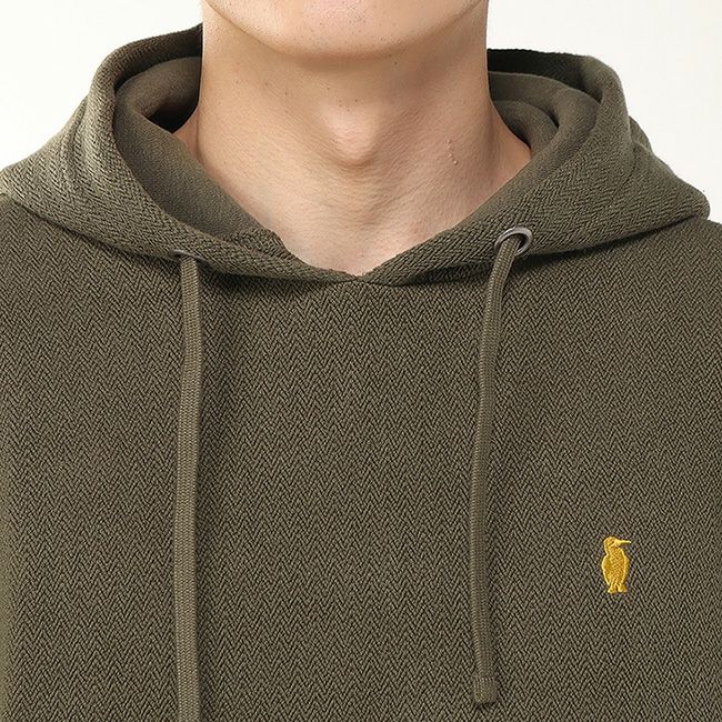 ヘリンボーン柄を取り入れたスウェットプルオーバーパーカー。